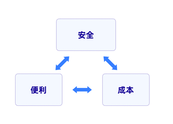 就數(shù)據(jù)資產(chǎn)的處理而言,我們主要需要考慮三個(gè)因素:便利性、安全狀況和成本。所以對(duì)于不同模式的討論,也可以簡(jiǎn)化為對(duì)于這三個(gè)因素的平衡。